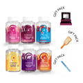 مجموعة العناية الذاتية المتكاملة من آيفي بيرز! تتضمن المجموعة النسائية المثالية حلوى جيلاتينية للشعر، والبشرة، والطاقة، والمناعة، والتوتر، والنوم، بالإضافة إلى علبة هدايا مجانية لصحة مثالية.